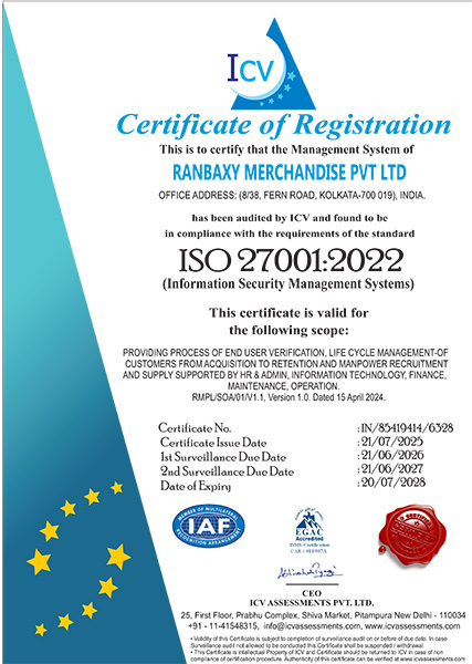 Ranbaxy Merchandise - ISO 27001 2022 Certificate