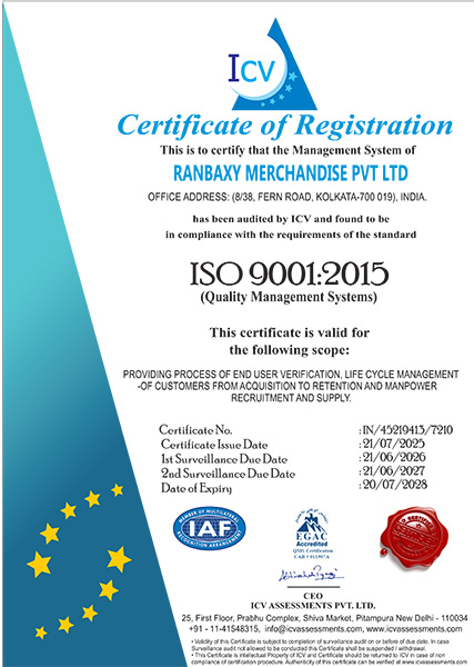 Ranbaxy Merchandise - ISO 9001 2015 Certificate